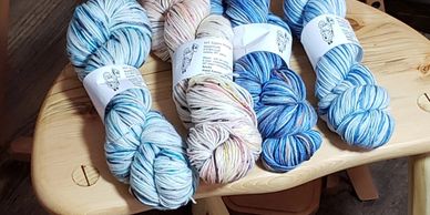 75% Merino/25% nylon super wash sock yarn. Machine wash and dry. Approximately 400 yards of fingering weight.